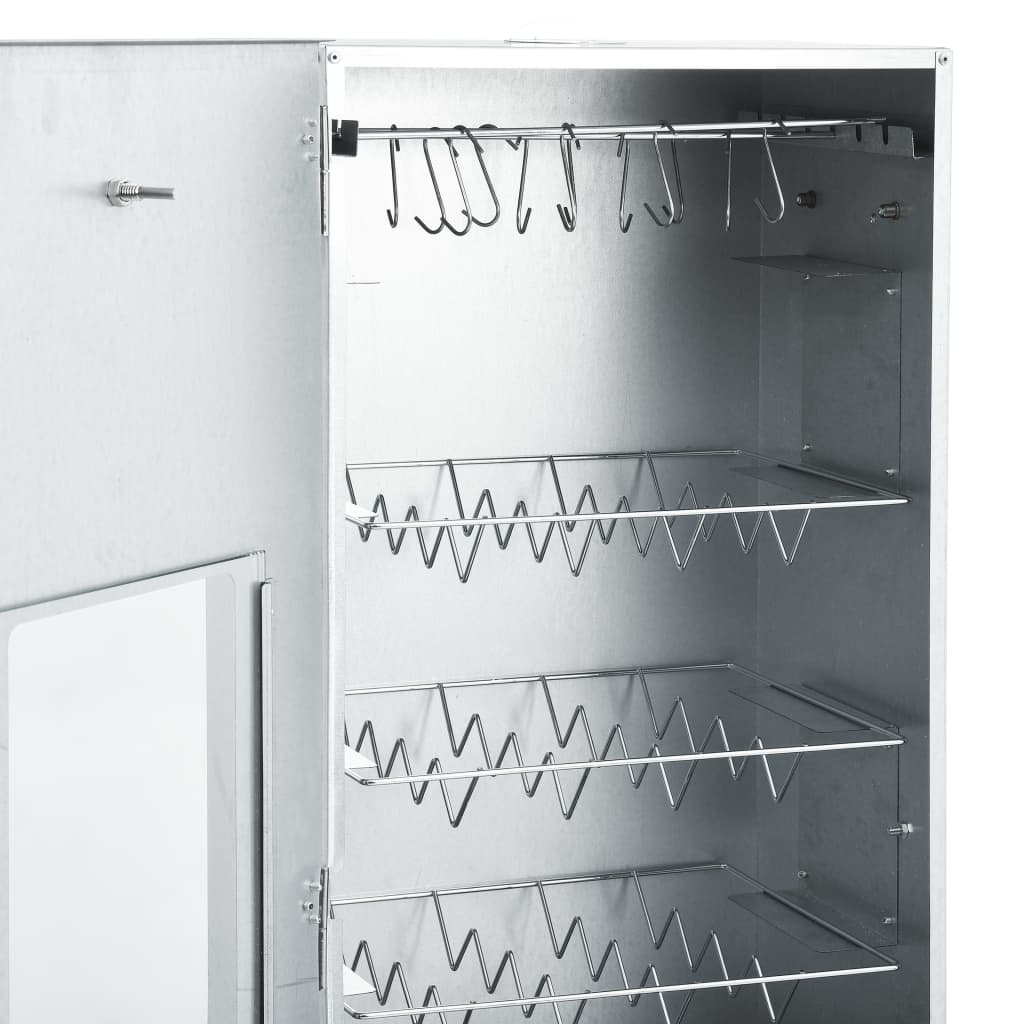 This smokehouse is equipped with a thermometer to keep you informed about the chamber temperature. Through the window, you can keep an eye on the food inside. The 124 cm tall smoking oven provides plenty of space for smoking the meat.