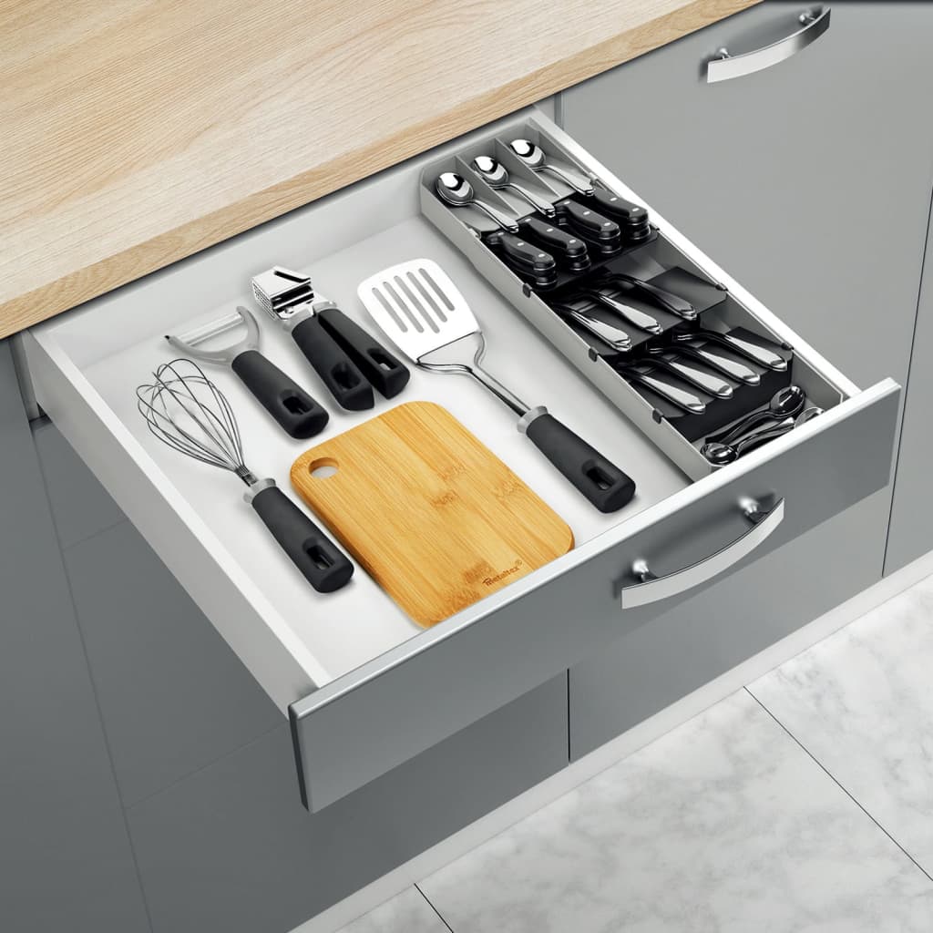 It is a great drawer cutlery organiser as it keeps all utensils neatly organised, and it keeps your fingers safe from random cuts.