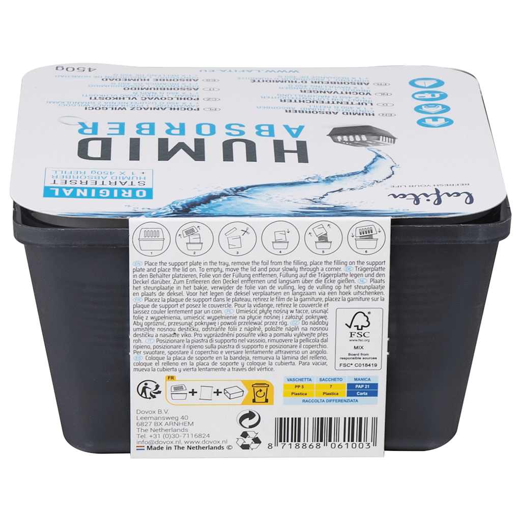 - Easy to use: When the moisture absorber bag is empty and the container is full of water, you can empty the container and place a refill bag in the dehumidifier.