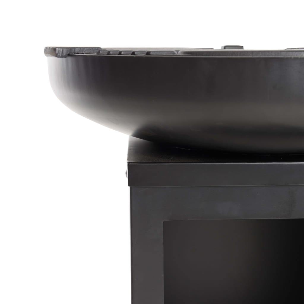- 3-in-1 outdoor grill, fireplace and plancha griddle with wood storage