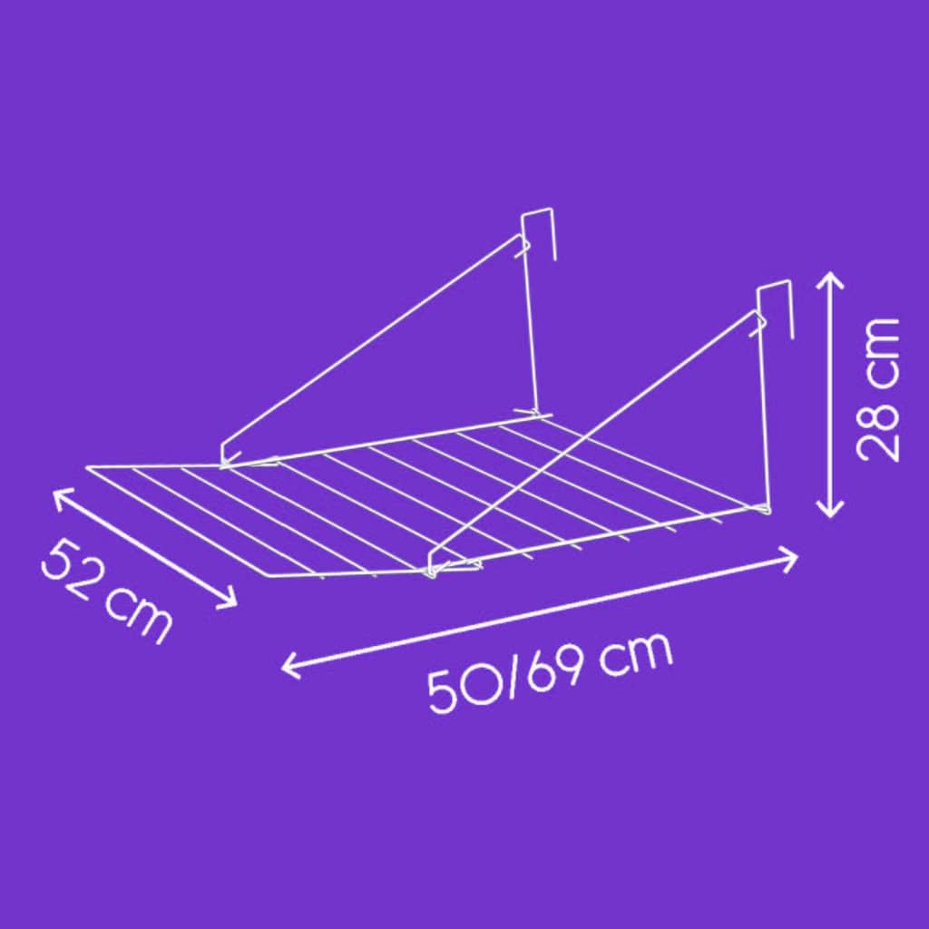 You can hang this drying rack on a radiator, door or balcony. It is also very useful for caravans or camping. The hooks fit a maximum width of 5 cm. This laundry rack is easy and compact to store due to its folding arms. When folded, it measures only 52 x 52 x 2.5 cm.